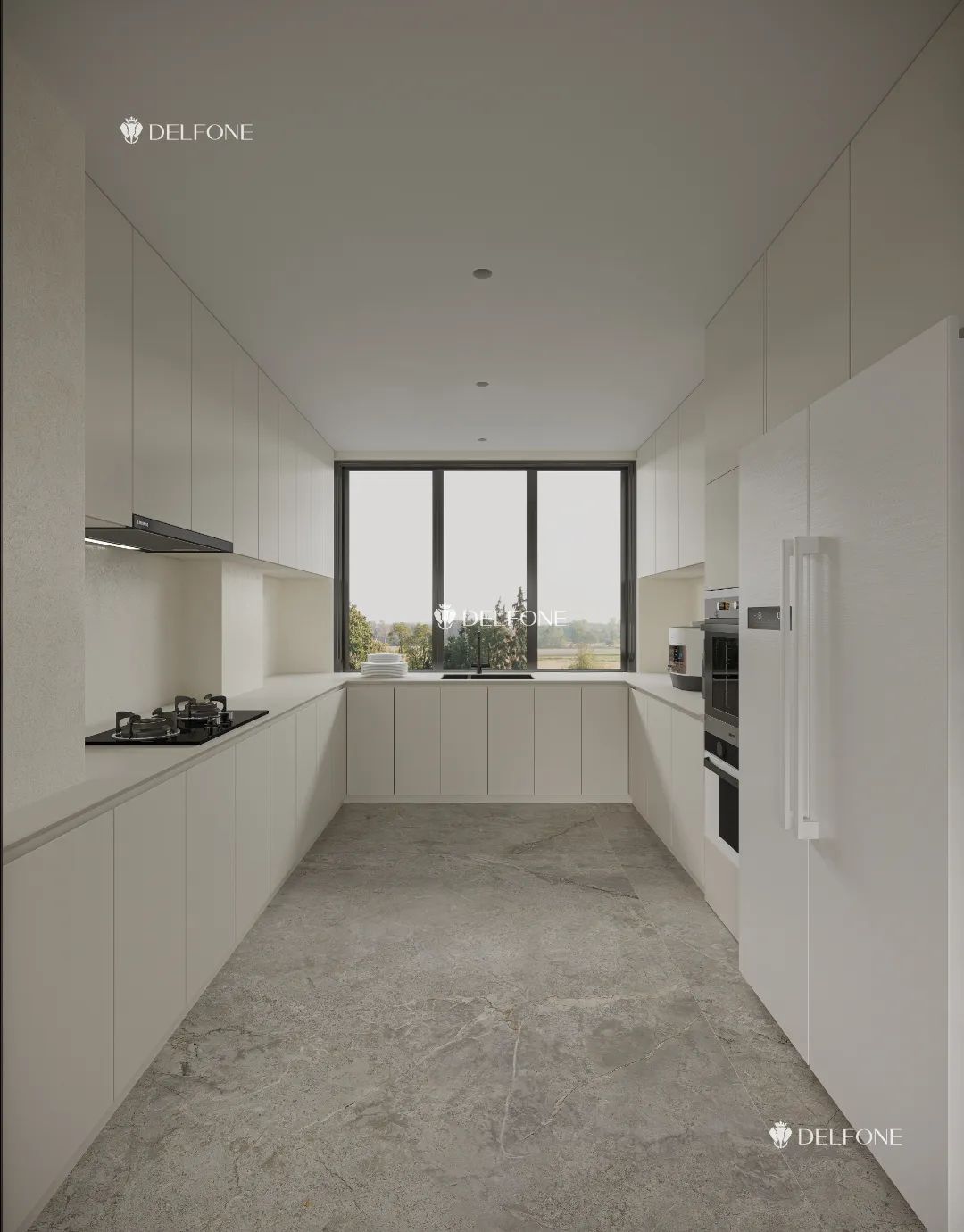 幸福莫过于生活有诗意,厨房有烟火。餐厅大面积的落地窗设计,用餐时与窗外的风景交织渗透,让空间充满生机。【极光白】打造的餐桌和茶台,纯白色调表达着至简至雅,搭配皮质餐椅,轻松营造出悠然自在的生活意境。
