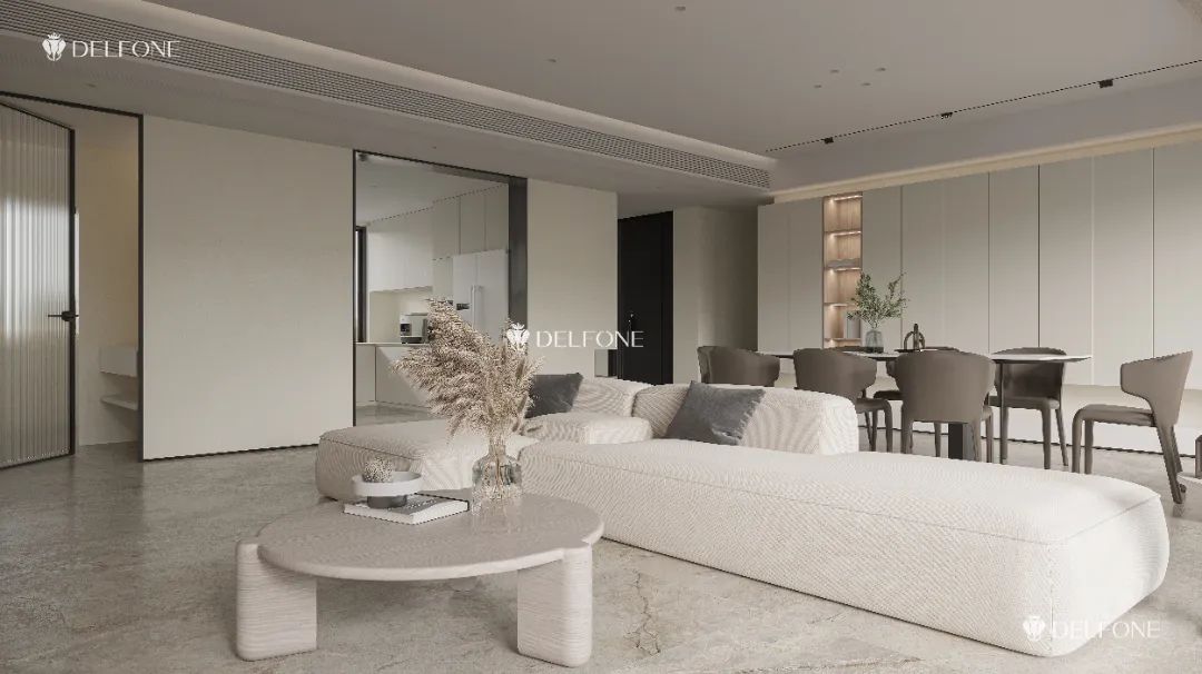 奶油风擅长用温柔质地打动人,俘获广大消费者的喜爱。本案是280m²的大平层,采用「奥古斯暖灰、莱姆石米白、极光白等」作为主材,极简奶油风设计,构建出温柔到心坎儿的家。