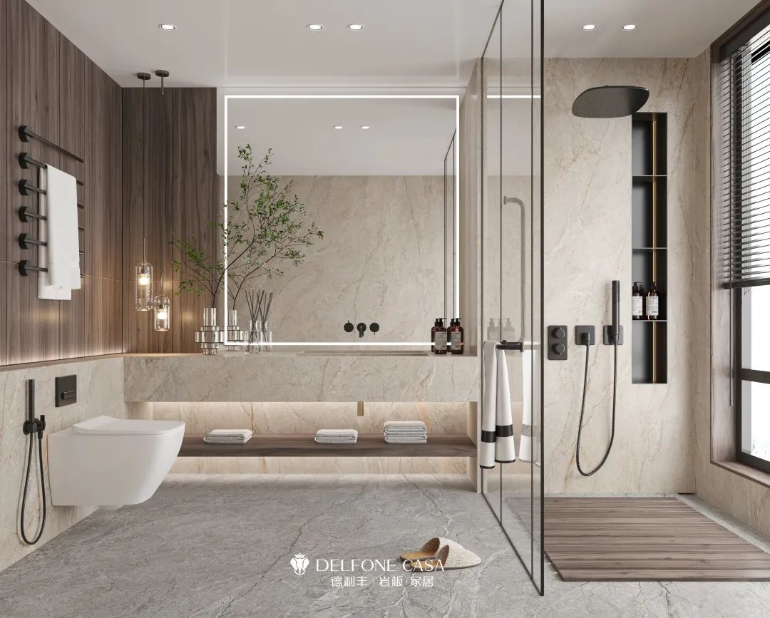使浴室墙面及洗手台焕发出辉煌的光泽