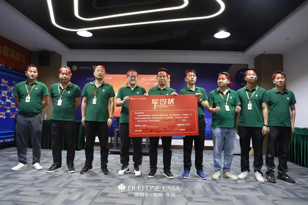 德利丰智能家居有限公司总经理吴志飞为各个部门授旗,各部门负责人从吴总手中接过了指引方向、凝聚力量的大旗。